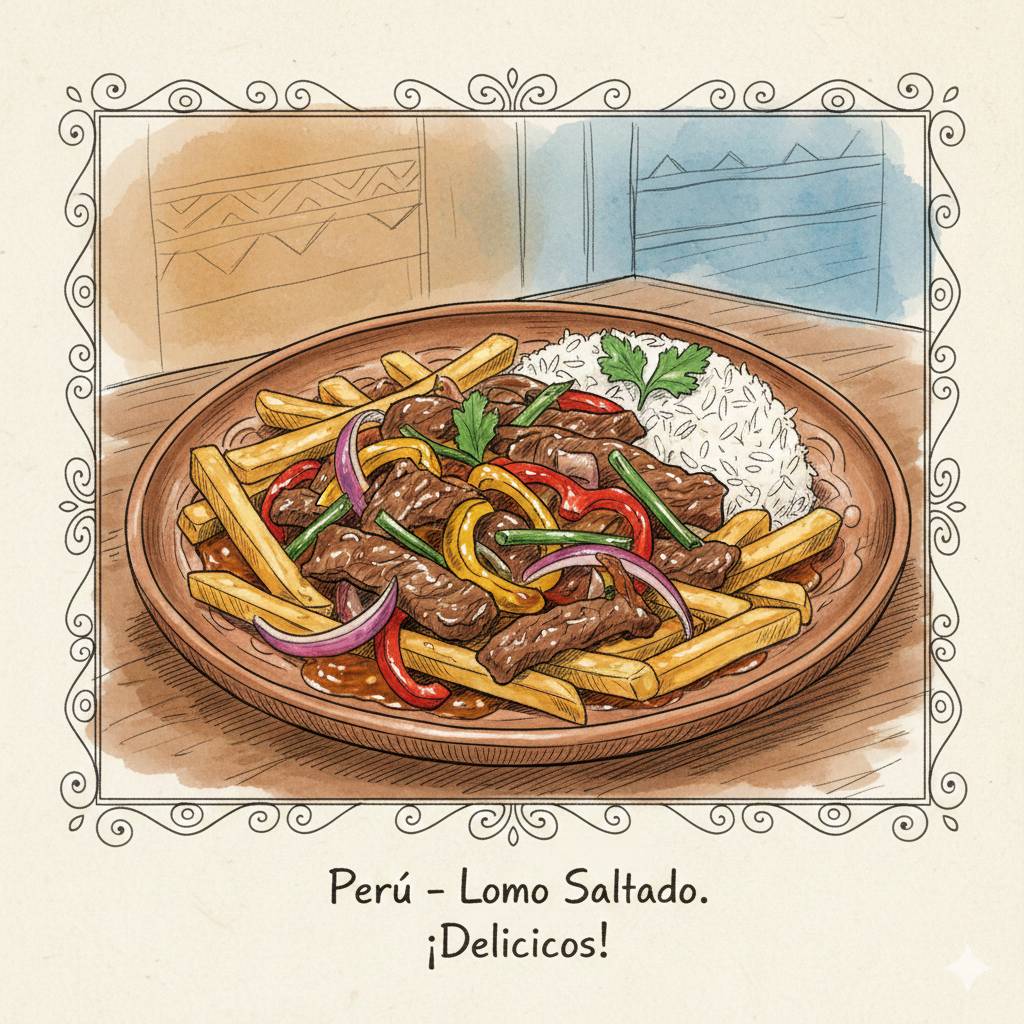 ロモ・サルタード: 牛肉とポテトを炒めた、醤油ベースの懐かしい味。